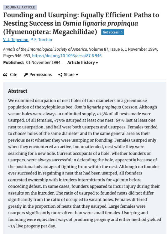 - Once a Female mason bee establishes a nest will other females try to take it over?